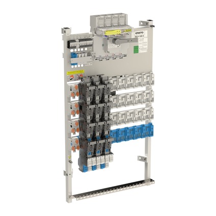 En haut à gauche du tableau : l’unité d‘éclairage public, l’unité de départ des circuits internes.